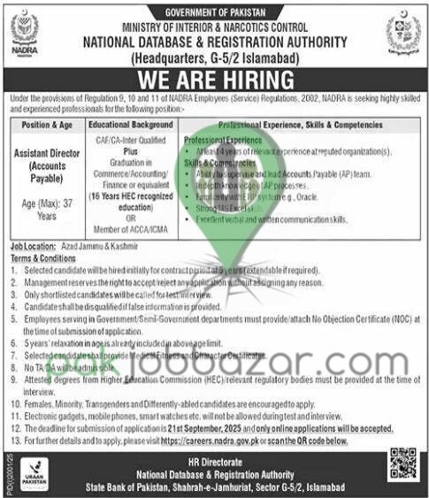 The NADRA Assistant Director (Accounts Payable) Jobs 2025 provide an excellent chance for finance and accounting professionals to work with one of Pakistan’s most trusted institutions.