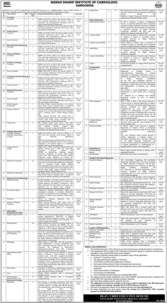 This announcement is a great opportunity for you if you are looking for government medical jobs in Punjab. Nawaz Sharif Institute of Cardiology Sargodha Jobs 2025 has been officially declared for a big number of medical, nursing, technical, administrative, and support staff positions. These vacancies are offered on a contract basis under the Specialized Healthcare & Medical Education Department, Government of Punjab.